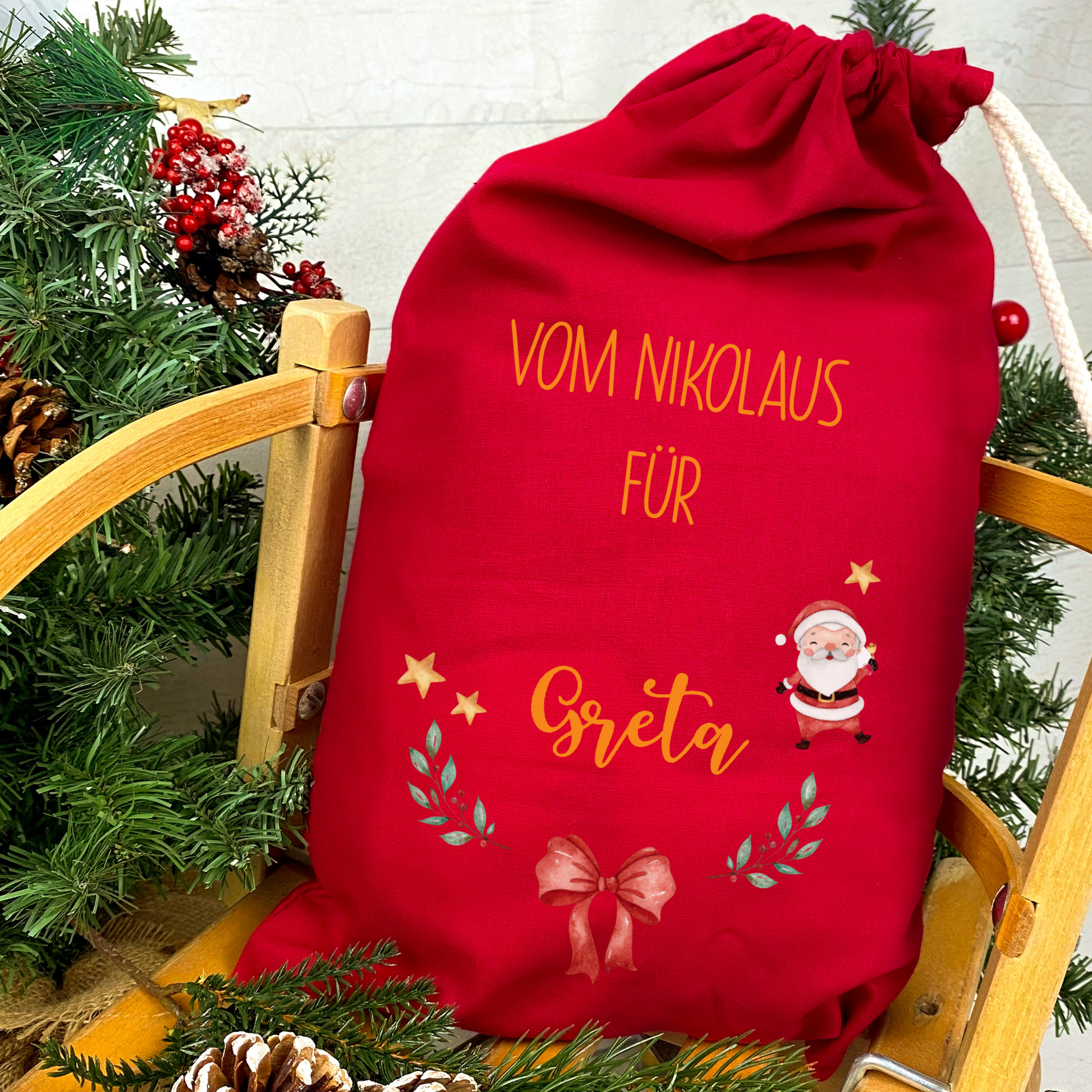 Personalisierter Beutel für Nikolaus Weihnachten - ideal als kleine Geschenkverpackung, für Süßigkeiten oder Geld - zwei Designs - rot