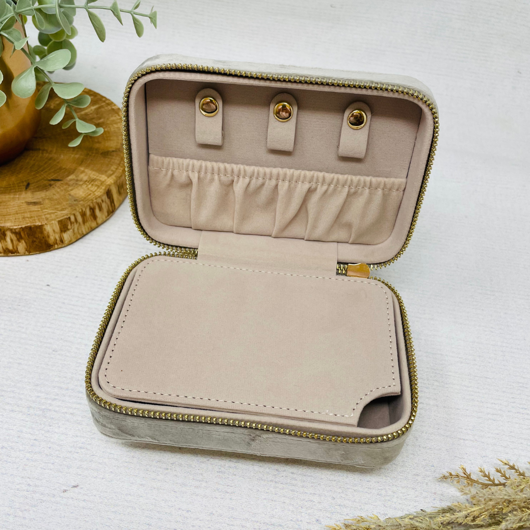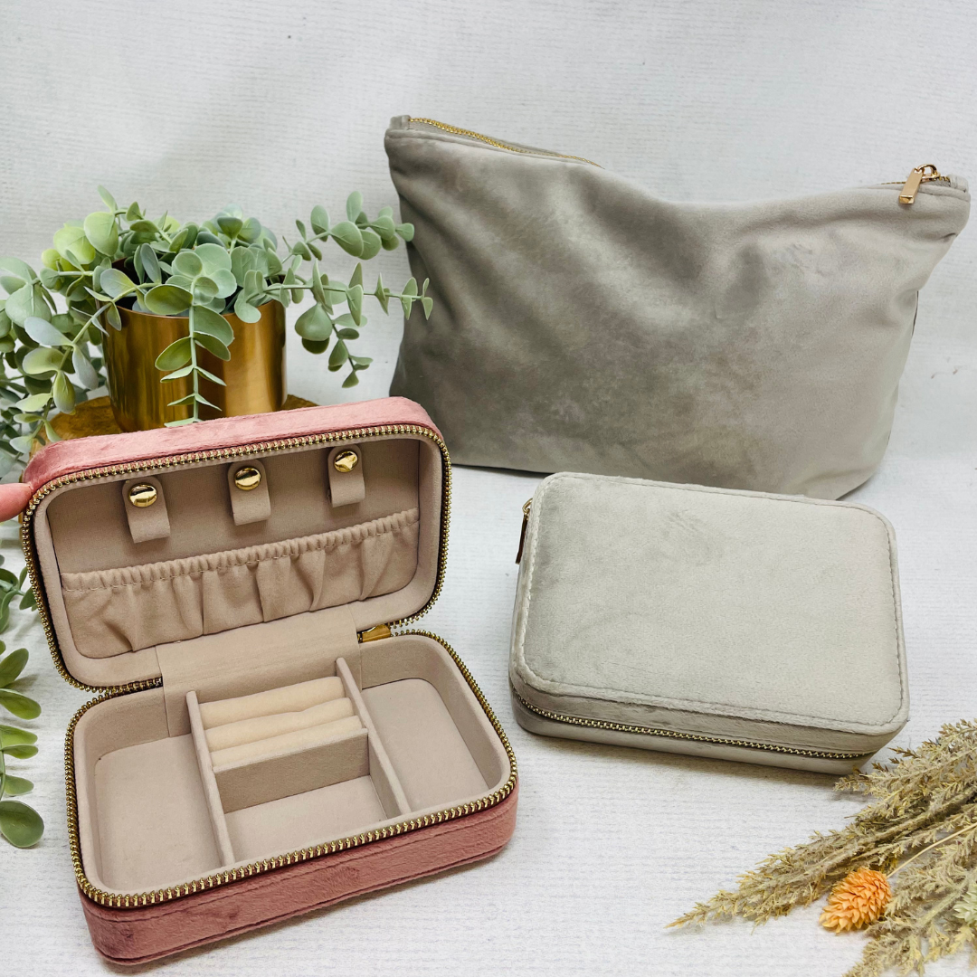💡 Tipp: Entdecke auch unsere passenden Kosmetikbeutel aus Samt – perfekt kombinierbar mit diesem Schmucketui als stilvolles Set für Zuhause und unterwegs.