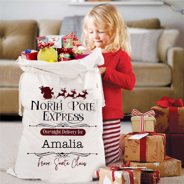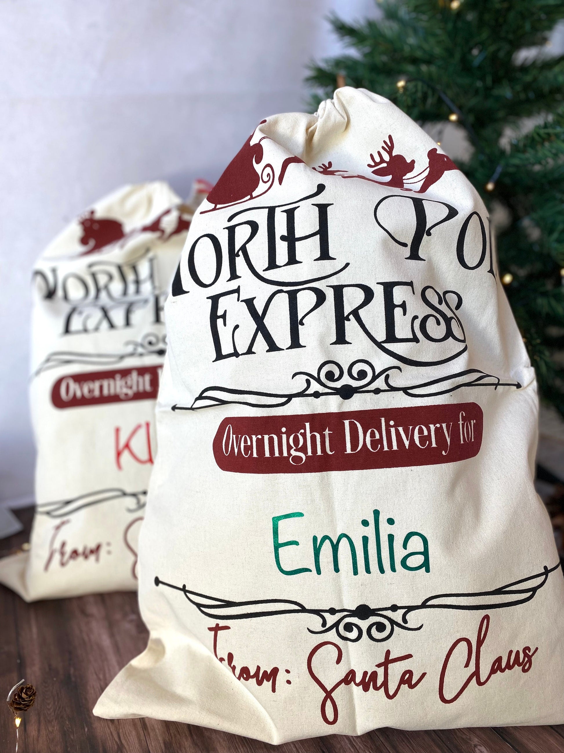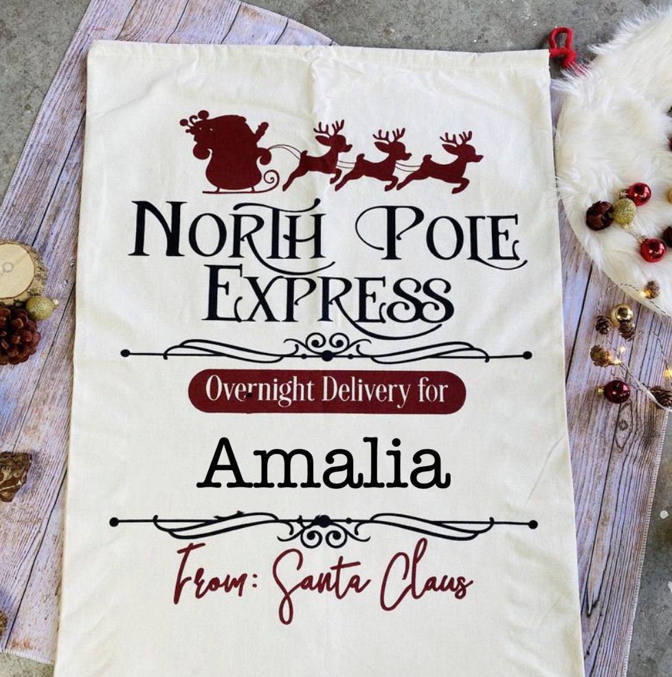 Nikolaussack Weihnachtsmann Sack Geschenkbeutel Weihnachten Jutesack groß Santa personalisiert mit Namen - North Pole Express