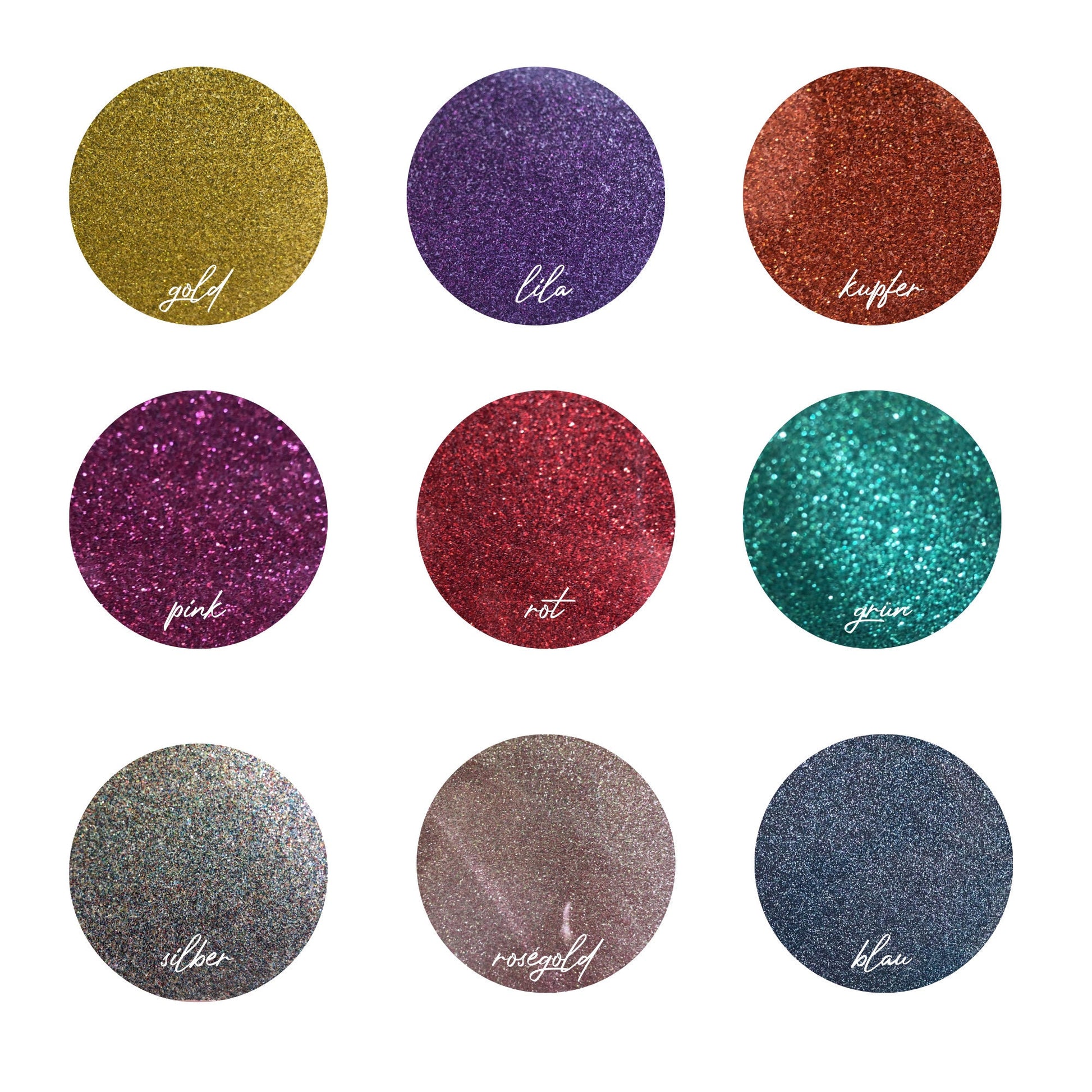 Der Druck ist in schwarz und bordeauxrot. Passend zum Stil personalisieren wir den Beutel mit einem Namen deiner Wahl in schwarz oder in Glitzer.