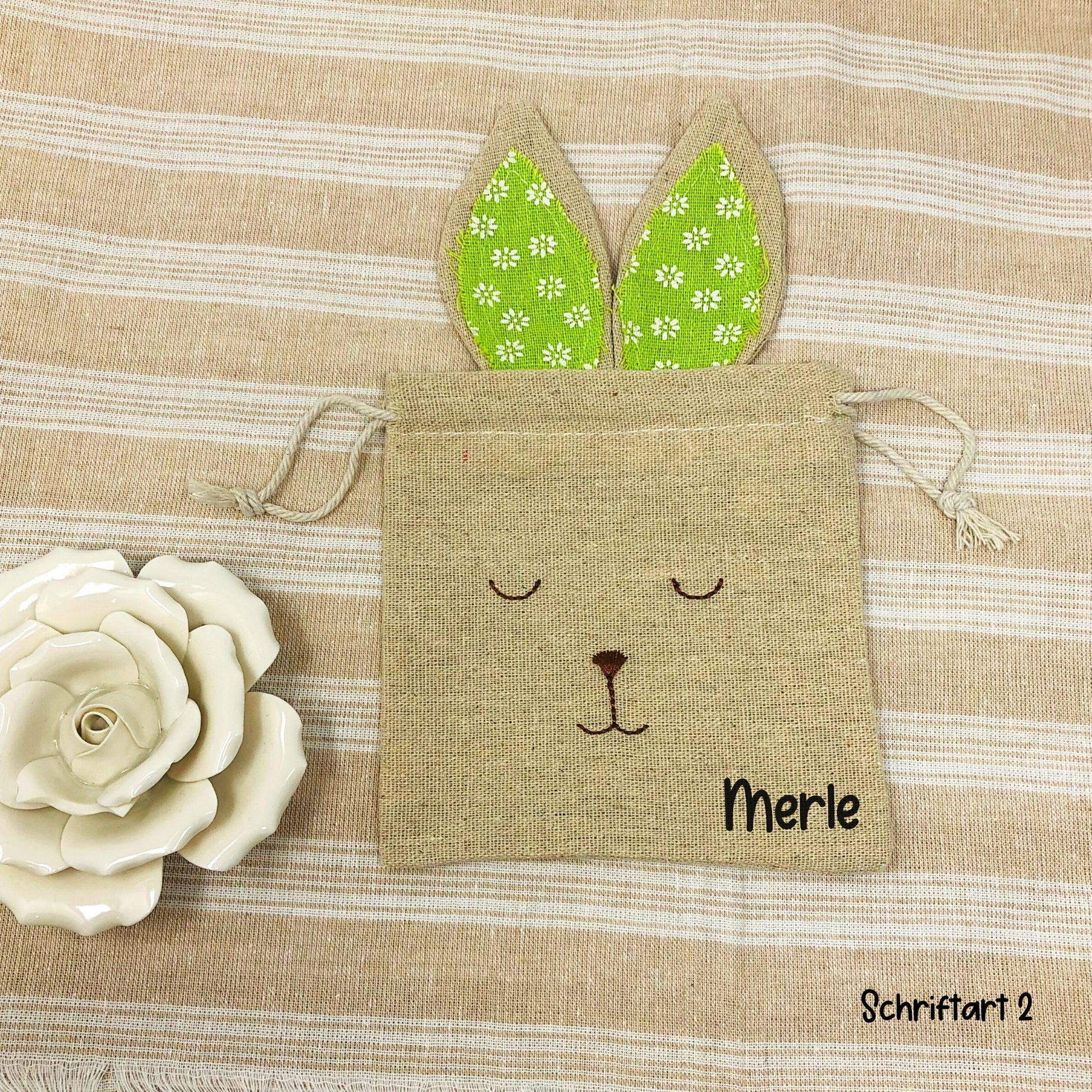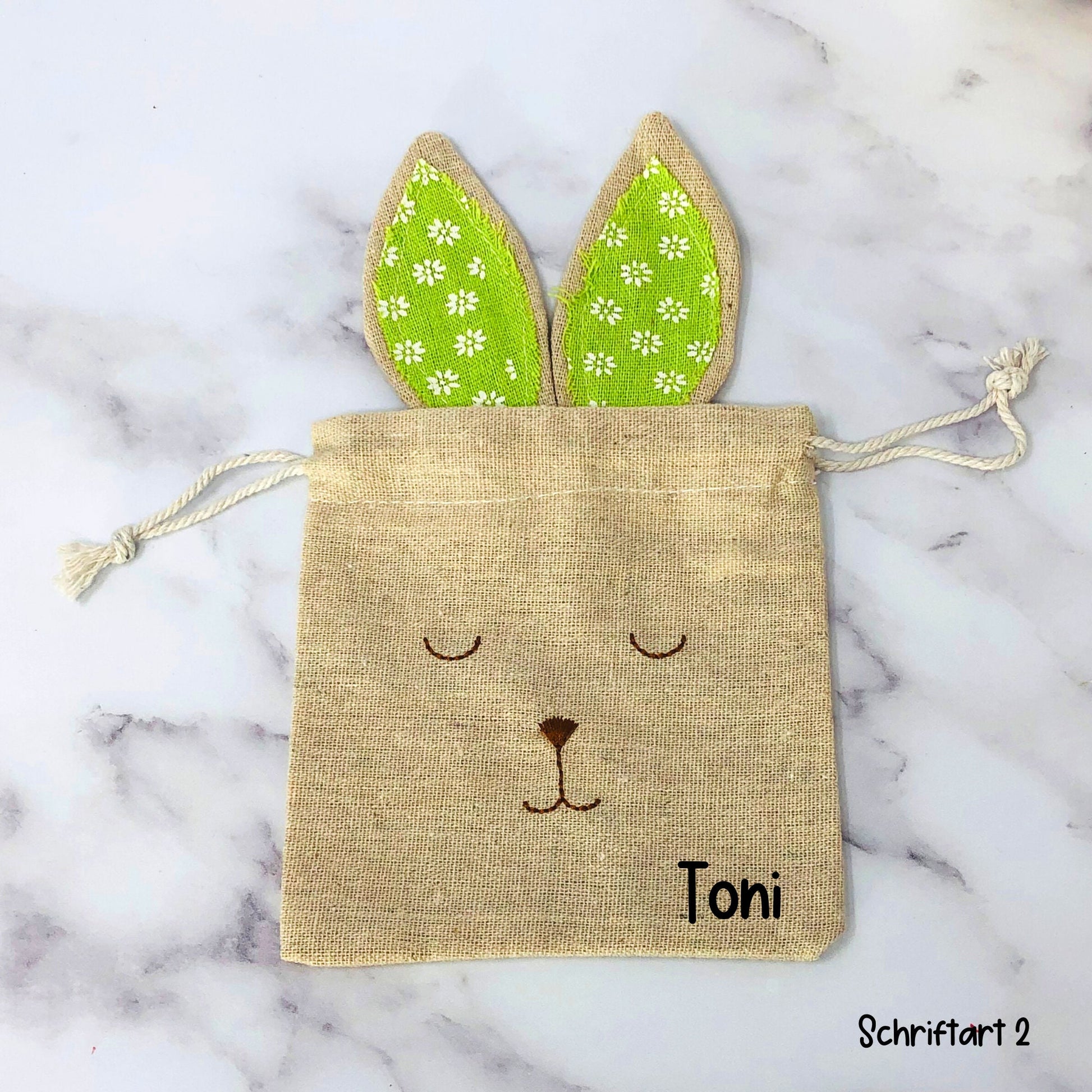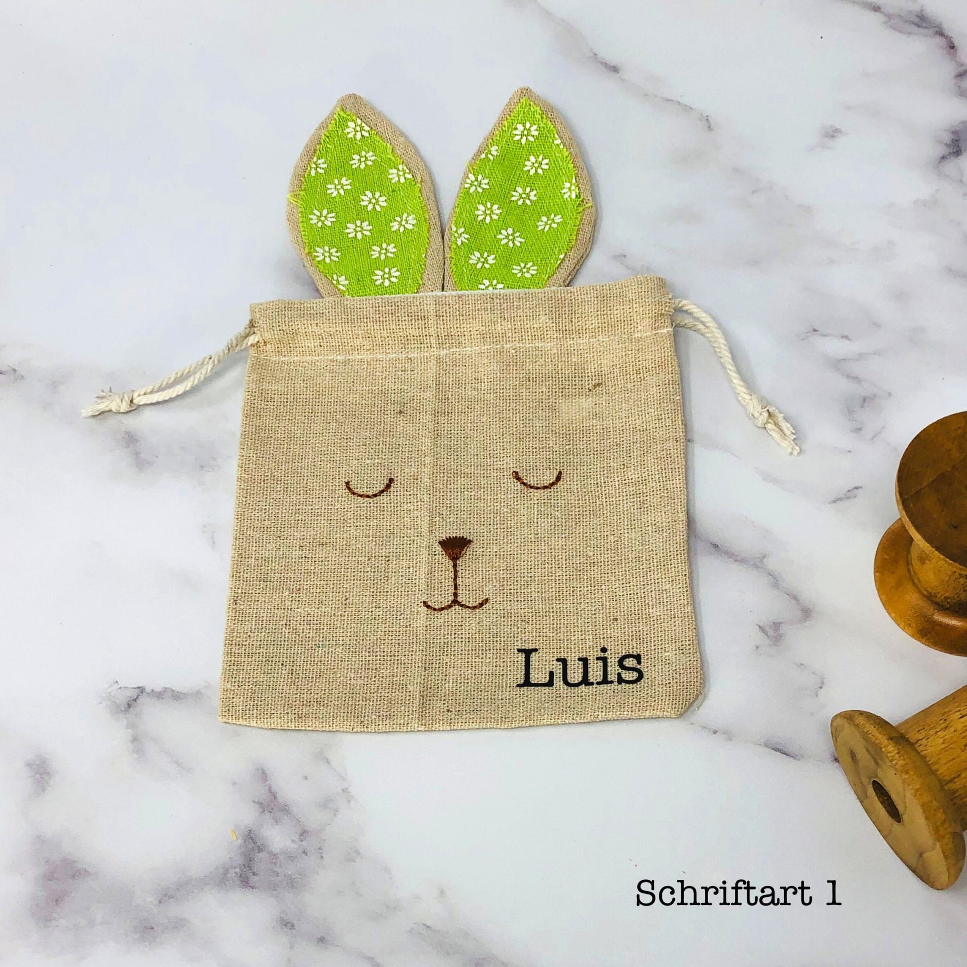Zuckersüße Osterbeutel aus Leinen, mit süßen Hasenohren und deinem Wunschnamen. 🐣🐇