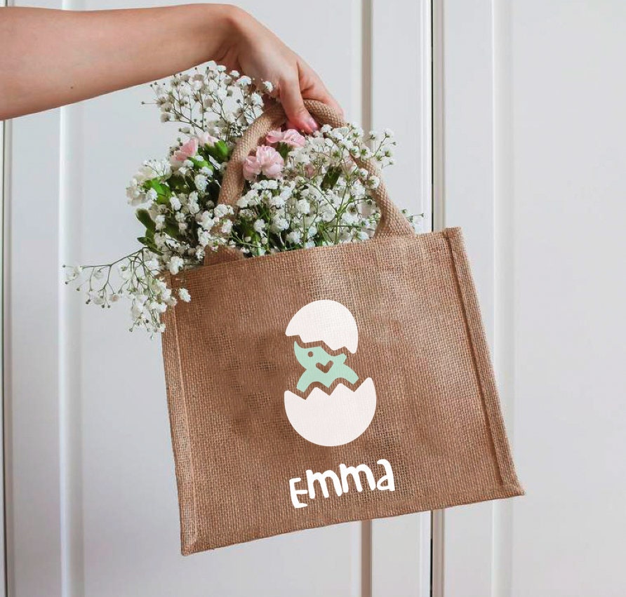 Osterkörbchen personalisiert - Jutebeutel personalisiert mit Küken und Name - verschiedene Farben