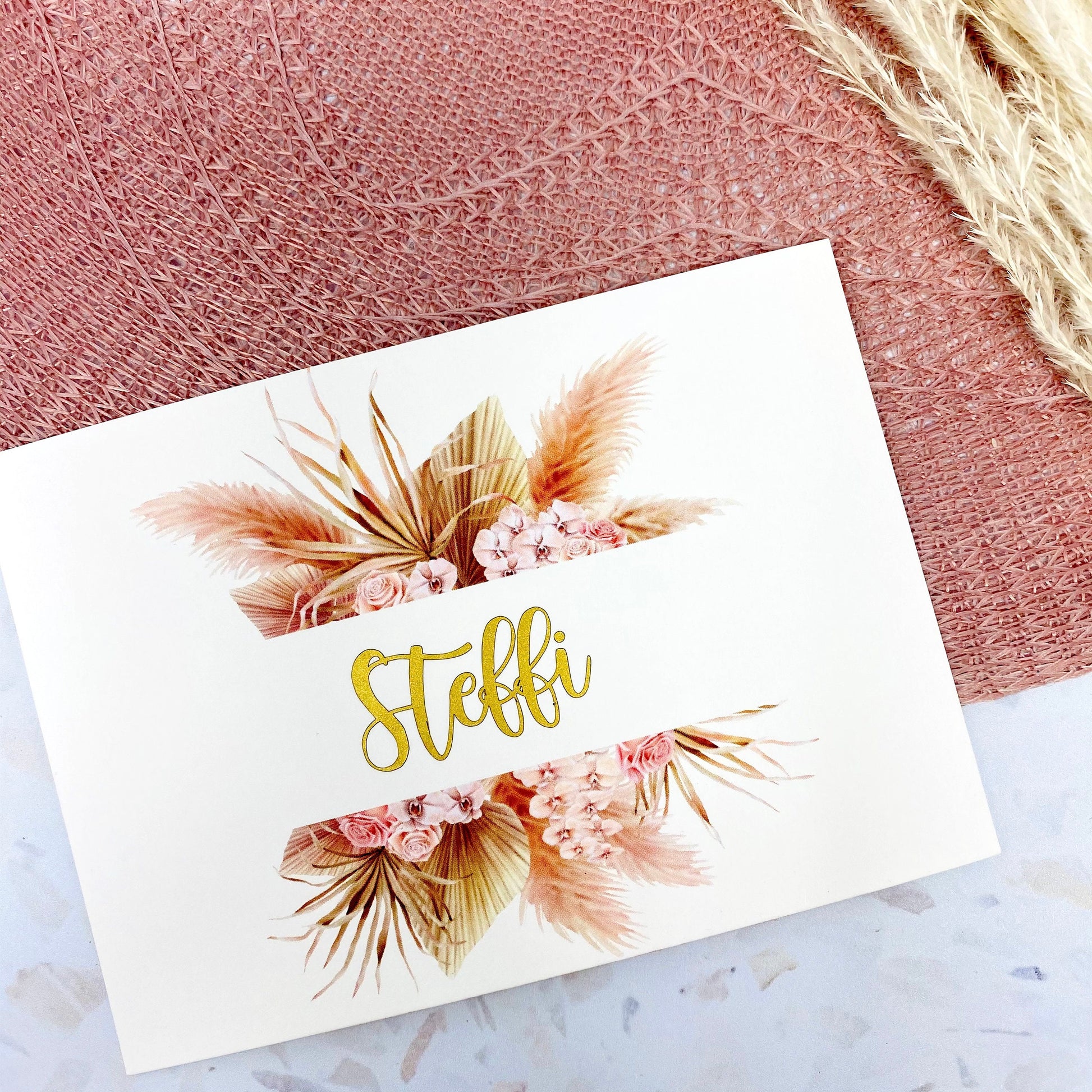 Wunderschöne Karte in A6 (Postkarten-Größe) im angesagten Boho-Stil mit Pampasgras.