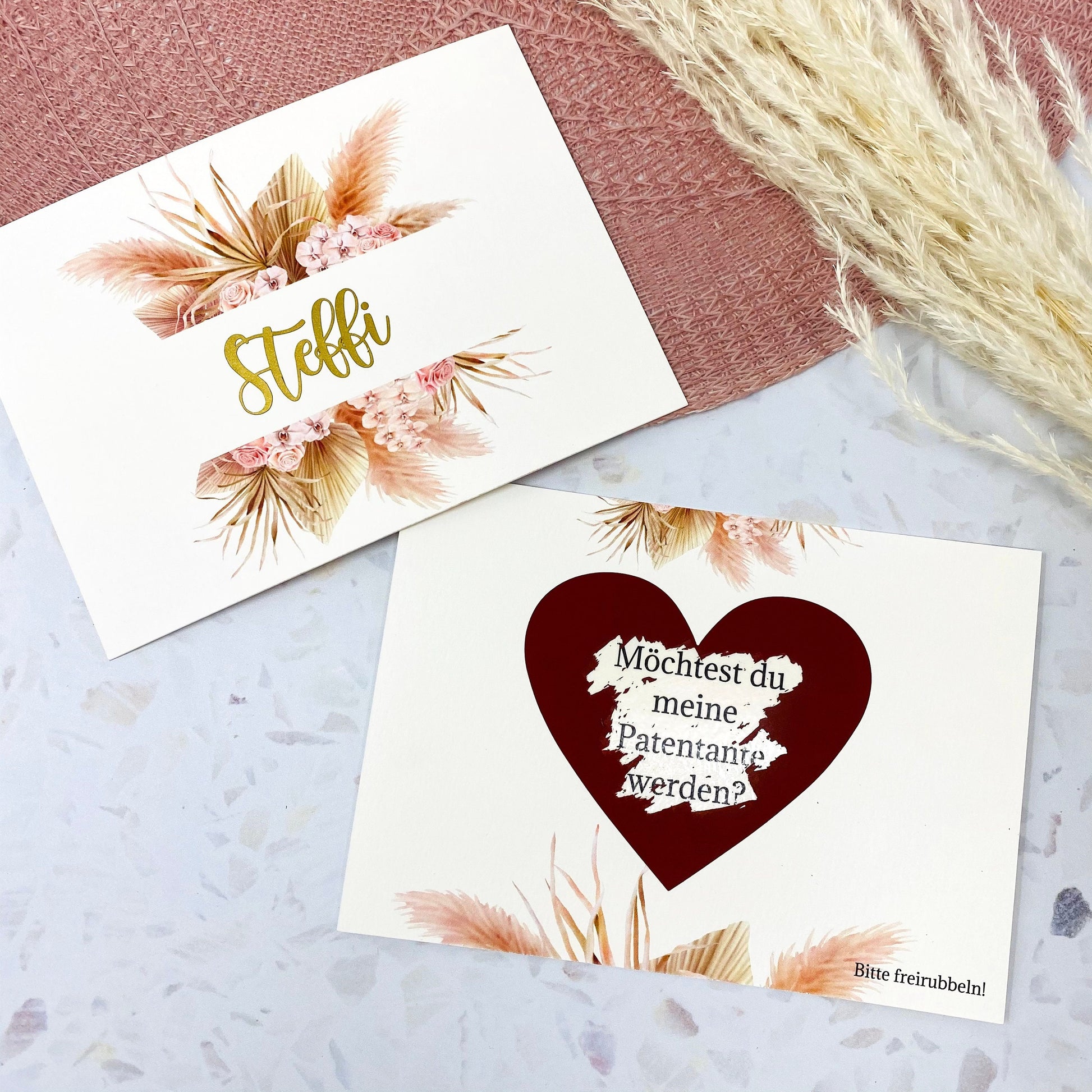 Patentante fragen - Rubbelkarte "Möchtest du meine Patentante werden?" - Personalisiert mit Namen - Design Pampas