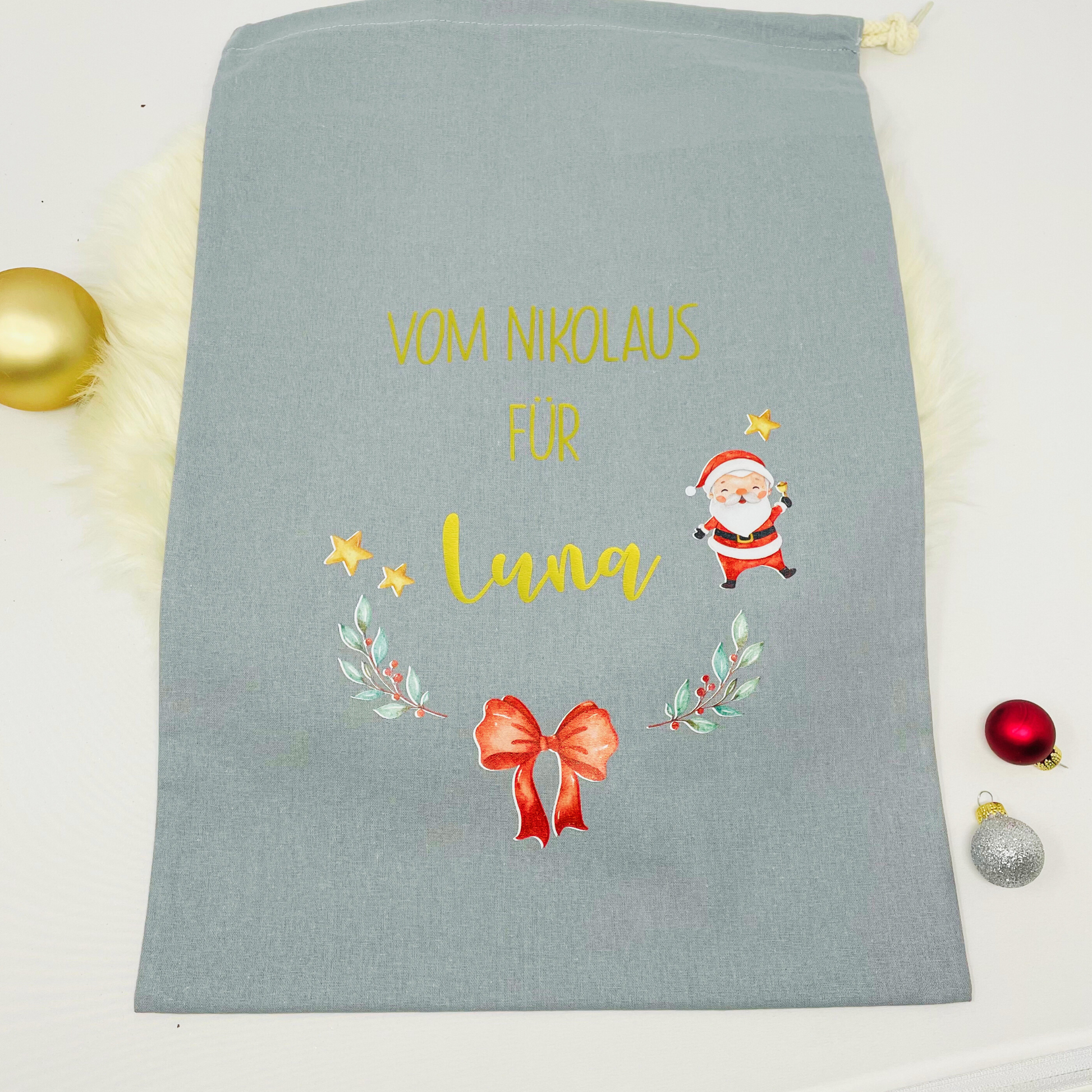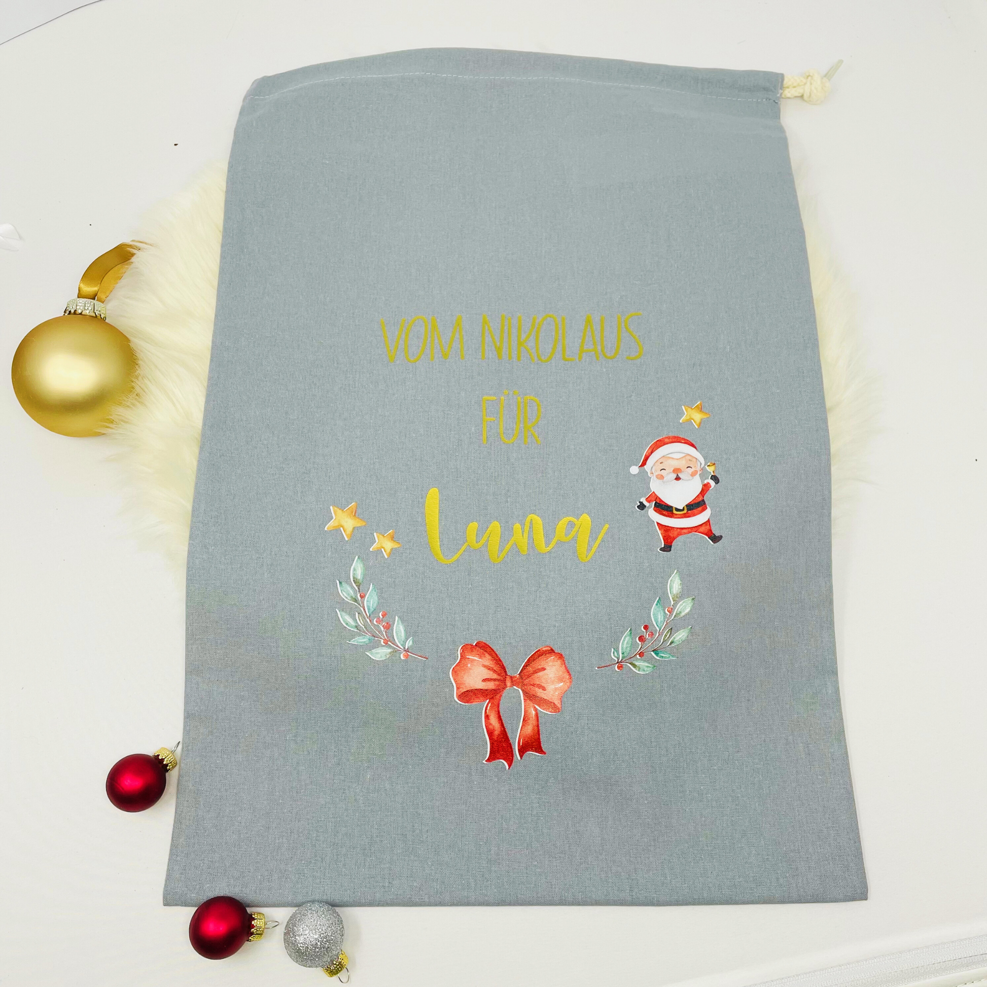personalisierter Beutel für Nikolaus Weihnachten - ideal als kleine Geschenkverpackung, für Süßigkeiten oder Geld - zwei Designs - grau