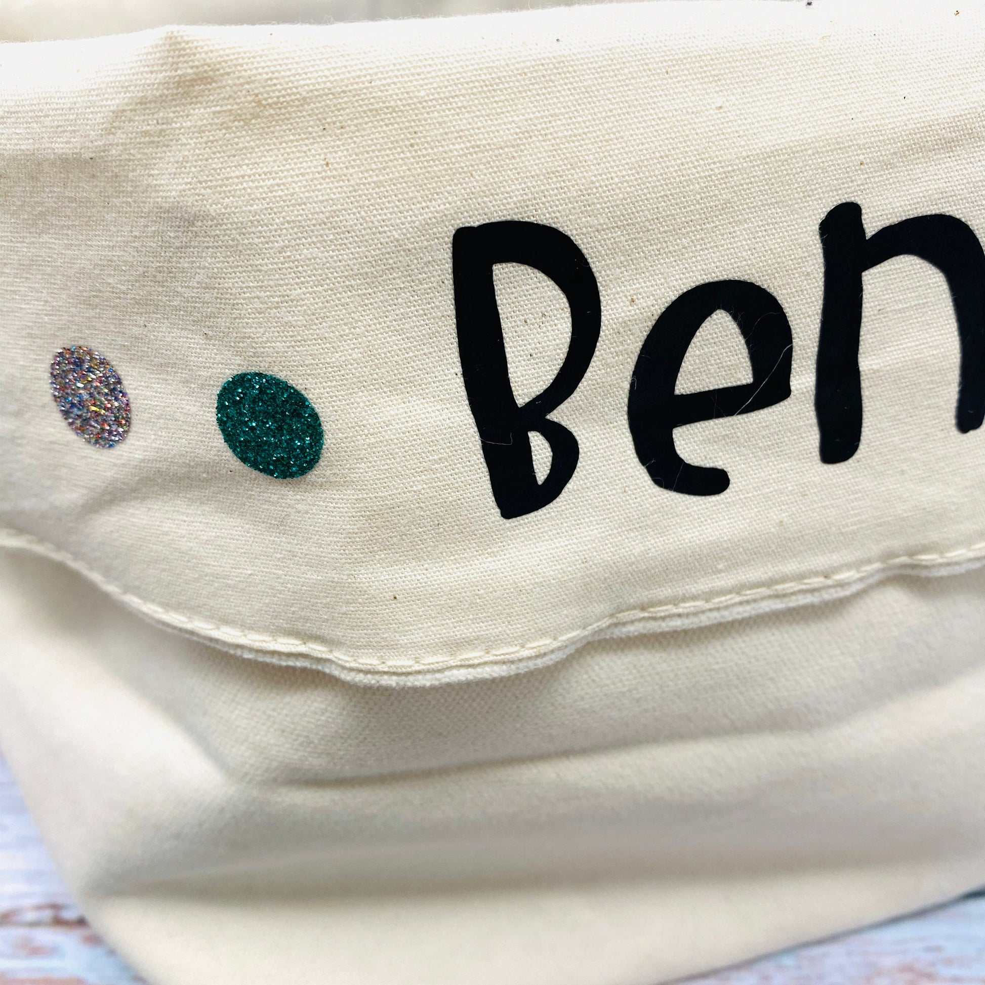 Das Utensilo ist der ideale Helfer am Wickelplatz, im Kinderzimmer oder im Badezimmer - hier finden Windel, Mulltücher, Babys Haarbürste, Cremetuben, Söckchen und vieles mehr ihren Platz. Aus robustem Canvasstoff in Natur personalisieren wir den Korb mit einem Wunschnamen in schwarz und Glitzerpunkten wie abgebildet. Weitere Designs sind im Shop verfügbar.