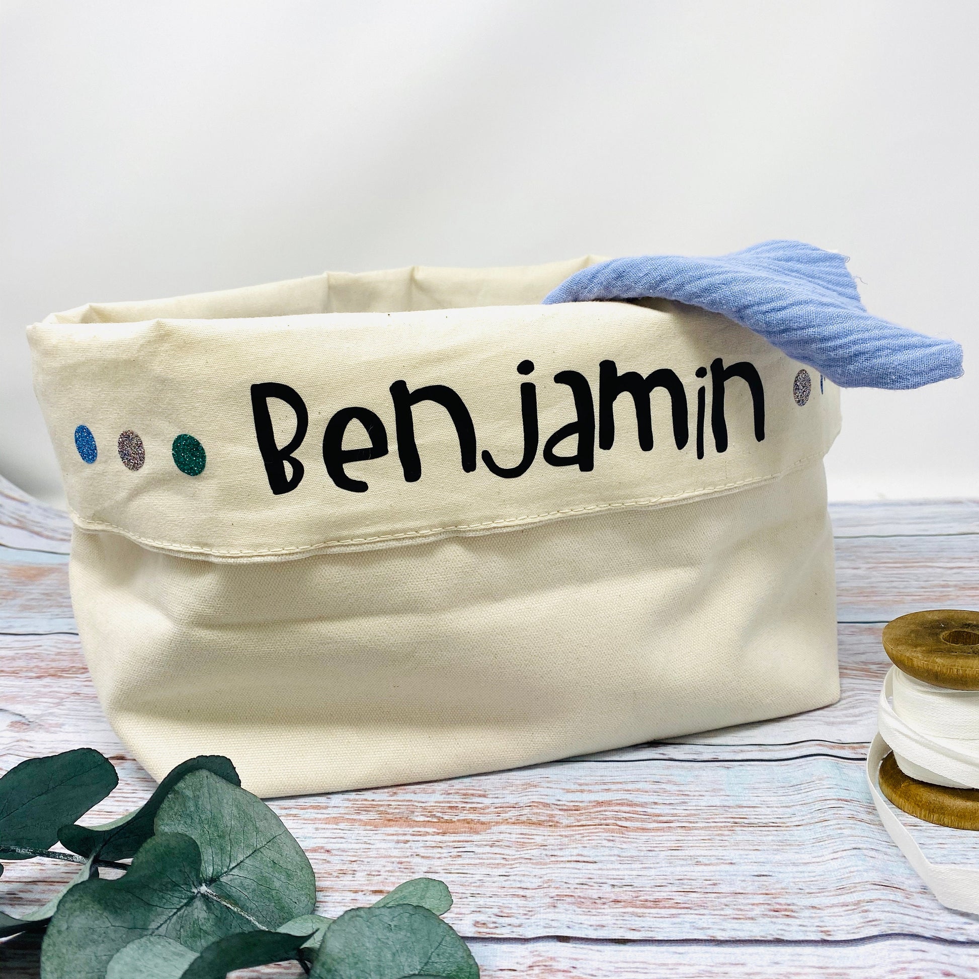 Utensilo Aufbewahrungskörbchen Kinderzimmer Baby Junge blau Stoff natur personalisiert mit Namen