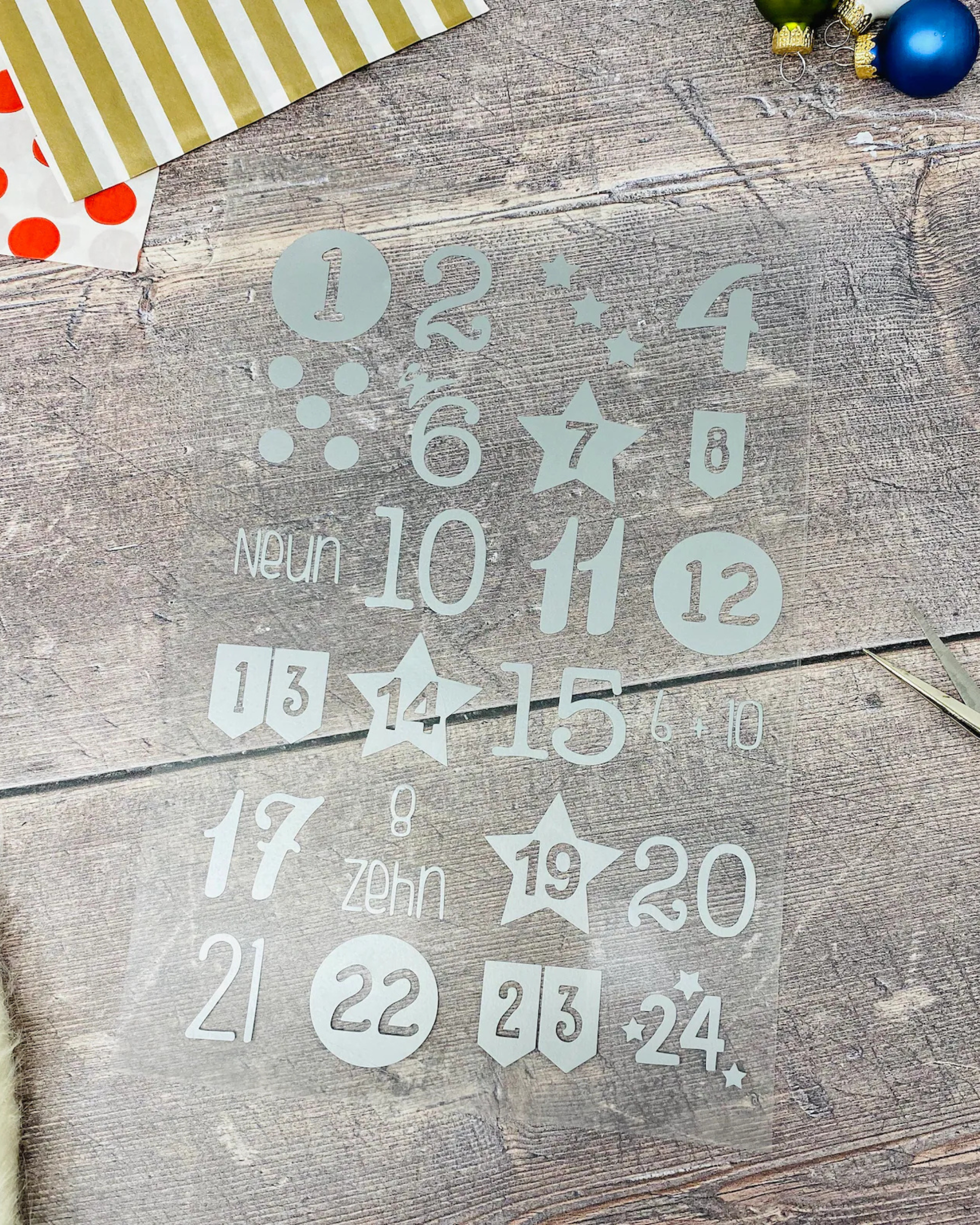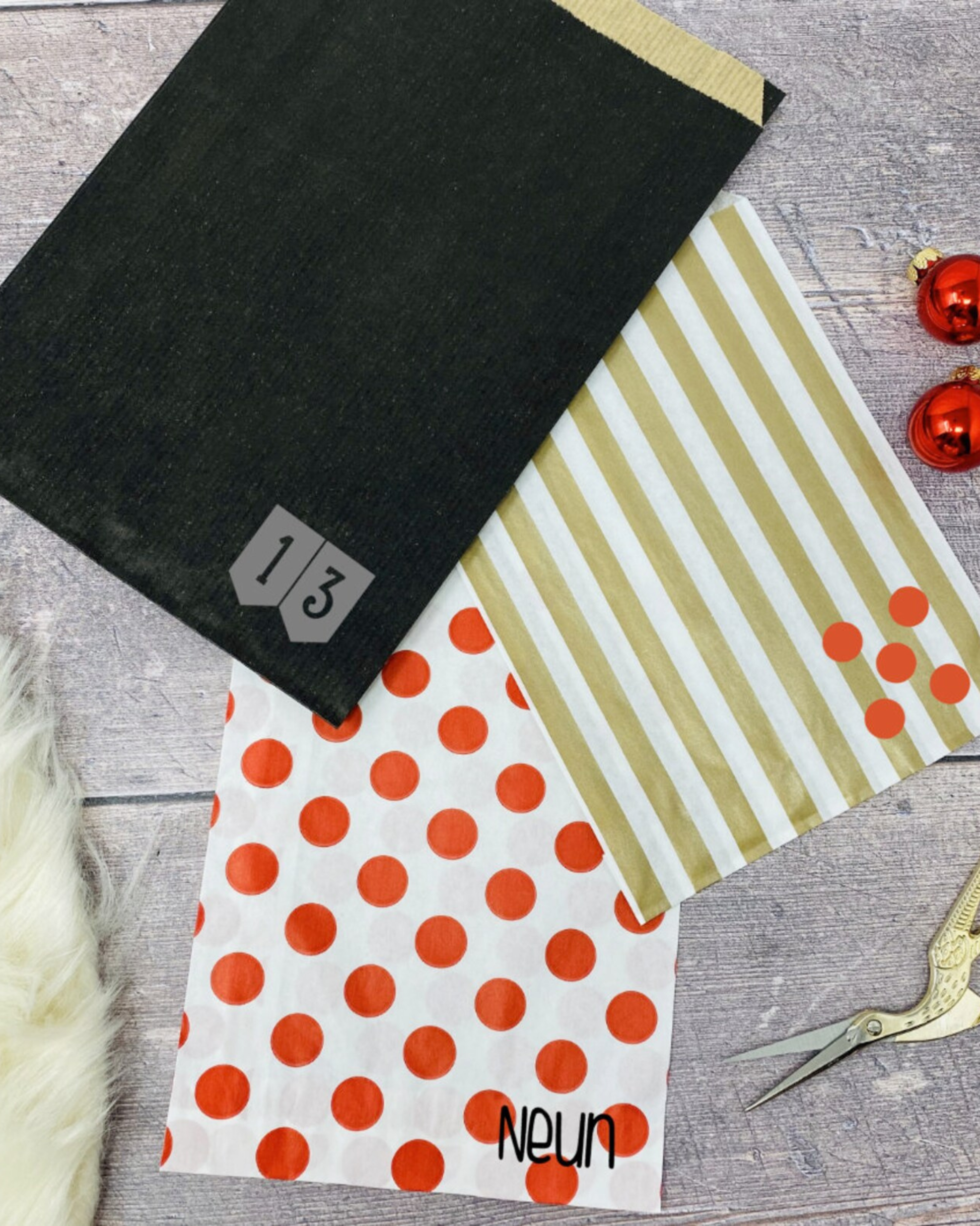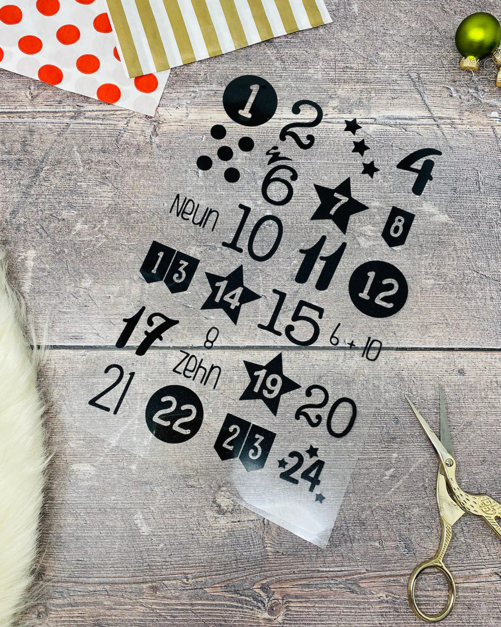 Mit unseren Zahlen 1–24 zum Aufbügeln verwandelst Du im Handumdrehen Beutel, Stofftüten oder kleine Säckchen in einen einzigartigen DIY-Adventskalender!