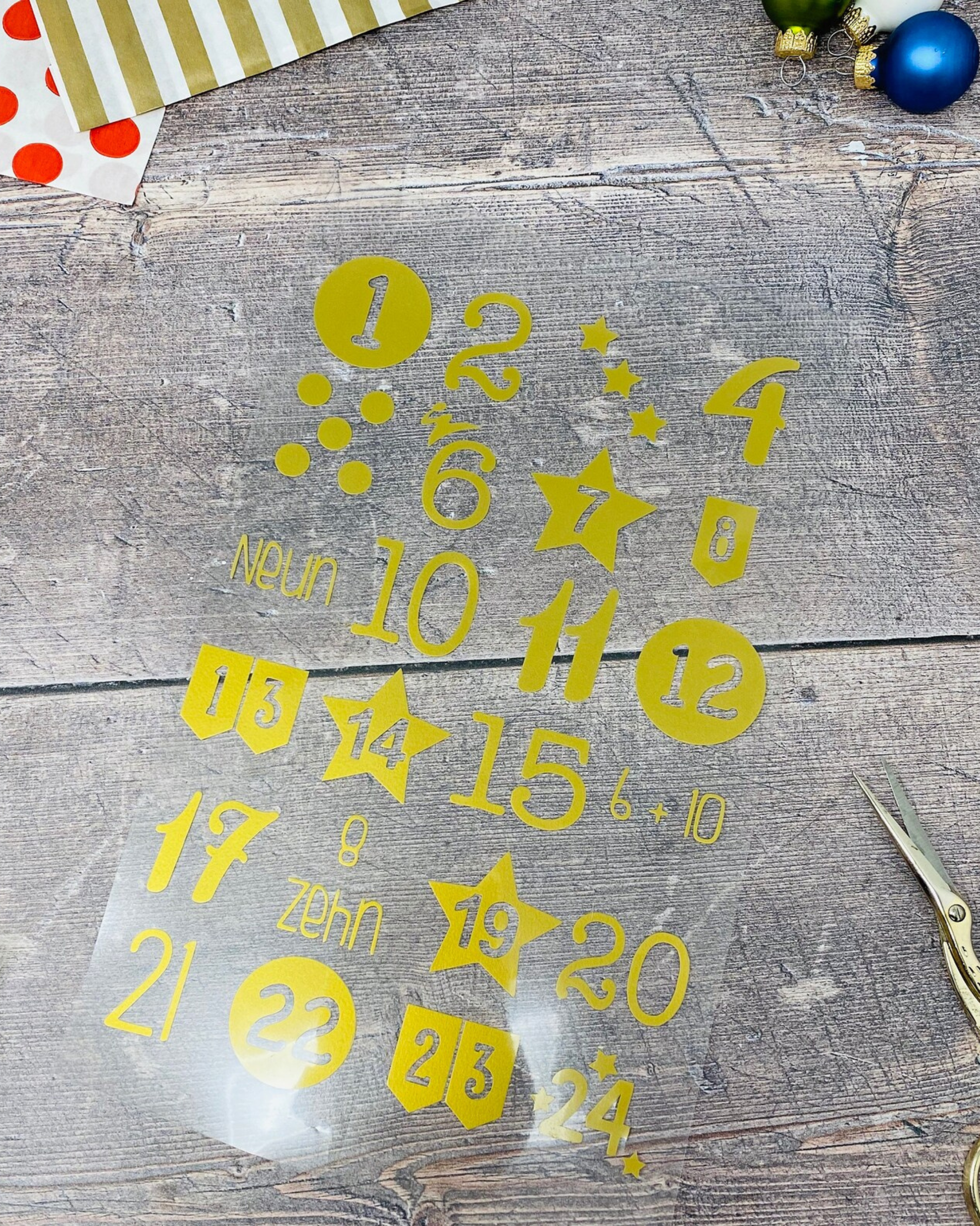 Zahlen 1–24 zum Aufbügeln für DIY Adventskalender Zahlen 1–24 zum Aufbügeln in rot gold silber schwarz, Handmade