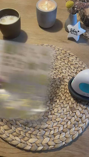 Mit einem handelsüblichen Bügeleisen (ca. 160°C – Stufe 2–3) fixieren.